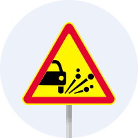 1.11 Ділянка дороги з буграми, напливами чи неплавним стикуванням конструкцій мостів. Знак також може застосовуватися перед штучно створюваними буграми у місцях, де необхідно примусово обмежити швидкість руху транспортних засобів (небезпечні виїзди з прилеглих територій, місця з інтенсивним рухом дітей через дорогу тощо).