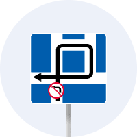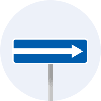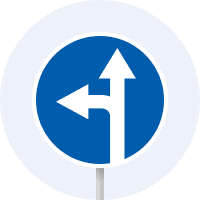 1.4.3 Знак (рух праворуч або ліворуч) показує напрямок руху на Т-подібних перехрестях, розгалуженнях доріг або об’їзду ділянки дороги, що ремонтується.
